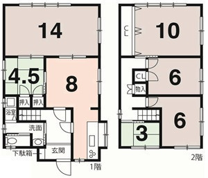 1F 洋 14.0帖 、1F 和 4.5帖 、2F 洋 10.0帖 、2F 洋 6.0帖 、2F 和 3.0帖