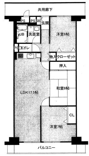1F LDK 17.5帖 、1F 洋 7.0帖 、1F 洋 6.0帖 、1F 和 6.0帖