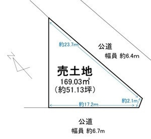 二方(角地) 南西:幅員6.7m接面幅17.2m公道 北東:幅員6.4m接面幅23.7m公道