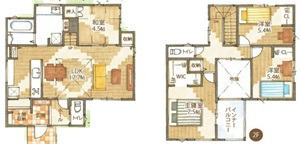 1F LDK 17.7帖 、1F 和 4.5帖 、2F 洋 7.5帖 、2F 洋 5.4帖 、2F 洋 5.4帖
