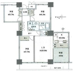 LDK 10.6帖 、和 5.0帖 、洋 7.7帖 、洋 6.2帖 、洋 5.7帖
