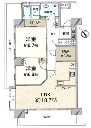 間取り表示のSはサービスルーム(納戸)の略称です。WICはウォークインクローゼット、DENは書斎の略称です。