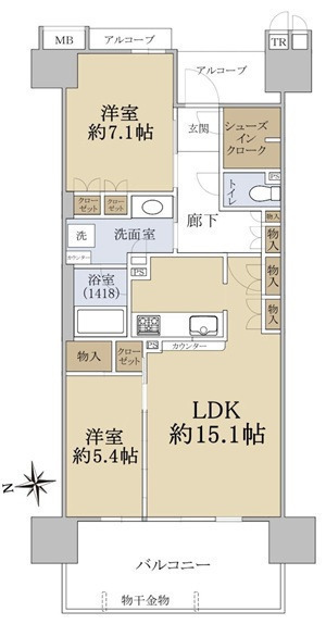 1F LDK 15.1帖 、1F 洋 7.1帖 、1F 洋 5.4帖