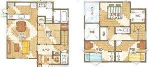 1F LDK 15.8帖 、1F 和 4.5帖 、2F 洋 7.0帖 、2F 洋 5.4帖 、2F 洋 5.4帖