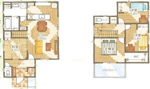 1F LDK 16.5帖 、1F 和 4.5帖 、2F 洋 7.0帖 、2F 洋 5.4帖 、2F 洋 5.4帖