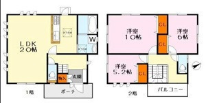 1F LDK 20.0帖 、2F 洋 10.0帖 、2F 洋 6.0帖 、2F 洋 5.2帖