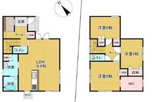 1F LDK 16.5帖 、2F 洋 6.0帖 、1F 洋 8.0帖