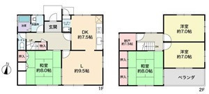 1F L 9.5帖 、1F DK 7.5帖 、1F 和 8.0帖 、2F 和 8.0帖 、2F 洋 7.0帖